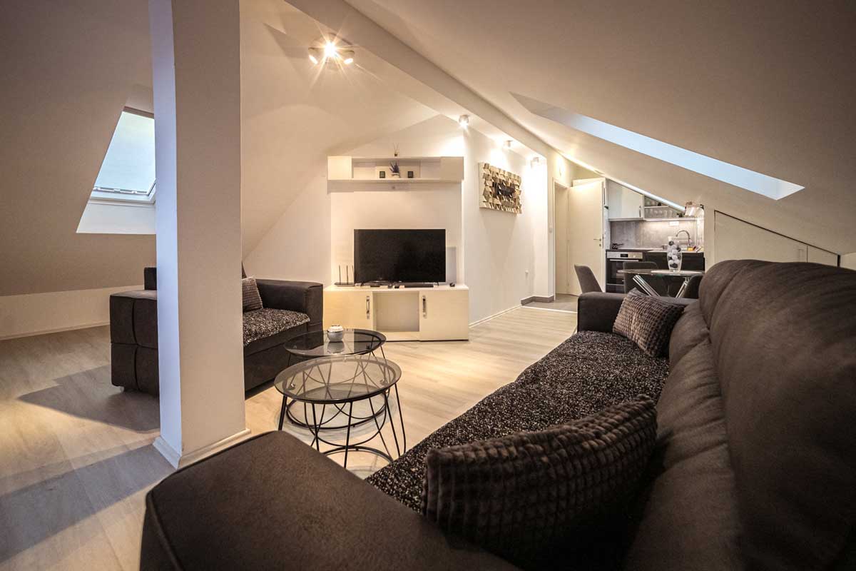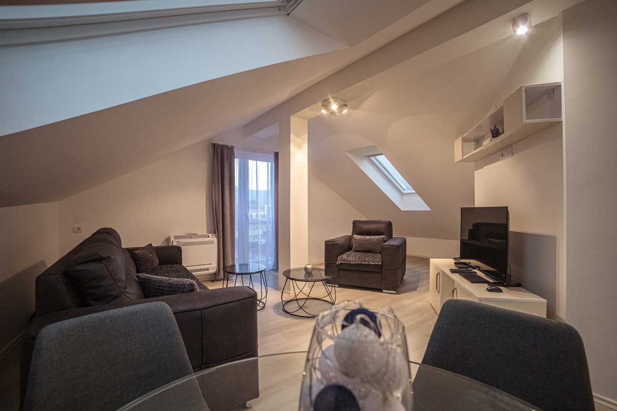 Apartment LUX 2 is located in a new residential building on the third floor, in the very center of Pirot, isolated from the city noise. The area of the apartment is 55m2 and includes a living room, a fully equipped kitchen for longer stays, a bedroom and a bathroom.