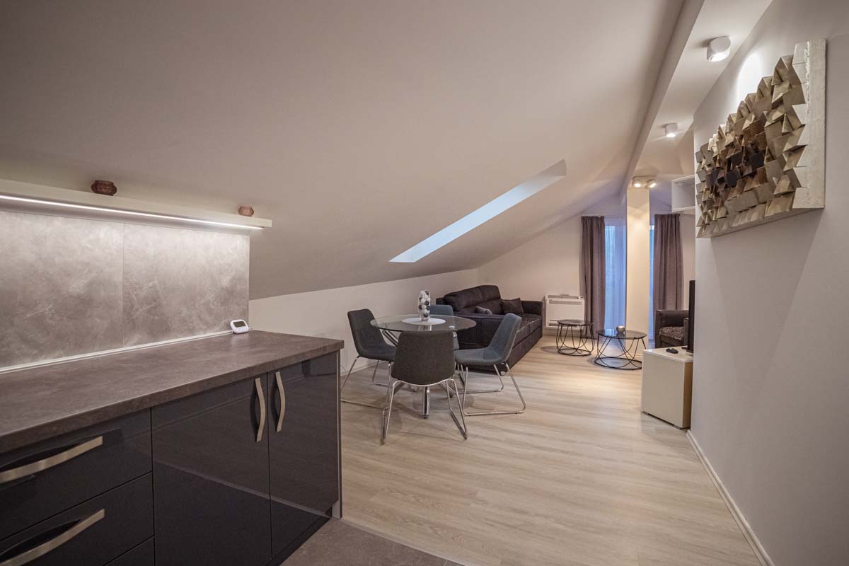 Apartment LUX 2 is located in a new residential building on the third floor, in the very center of Pirot, isolated from the city noise. The area of the apartment is 55m2 and includes a living room, a fully equipped kitchen for longer stays, a bedroom and a bathroom.
